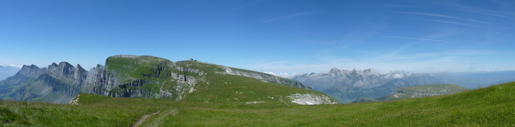 | chäserrugg mit churfirsten links und alpstein mit säntis rechts | |||